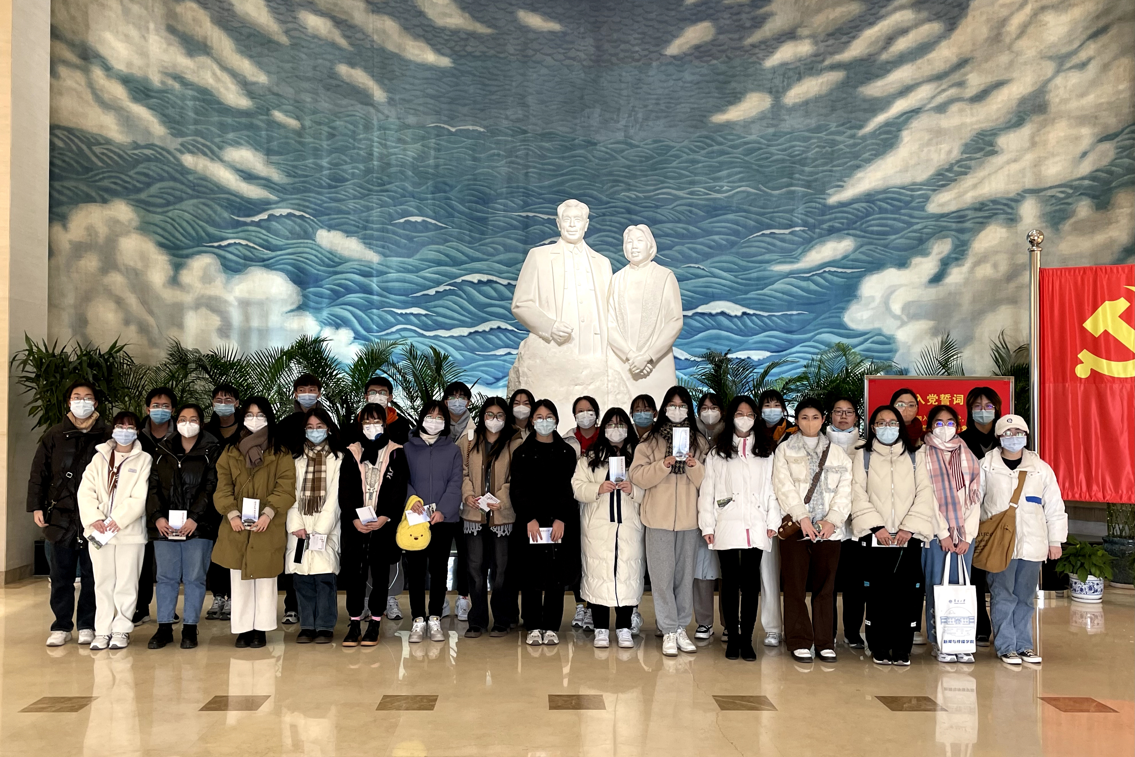 党的二十大报告中指出:“弘扬以伟大建党精神为源头的中国共产党人精神谱系,用好红色资源,深入开展社会主义核心价值观宣传教育,深化爱国主义、集体主义、社会主义教育,着力培养担当民族复兴大任的时代新人。”为深入学习贯彻党的二十大精神,PlayAce官方网站2022级本科新闻与传播类一班、二班团支部的55位共青团员,来到周恩来邓颖超纪念馆开展主题团日活动,聆听伟人故事,赓续红色血脉。