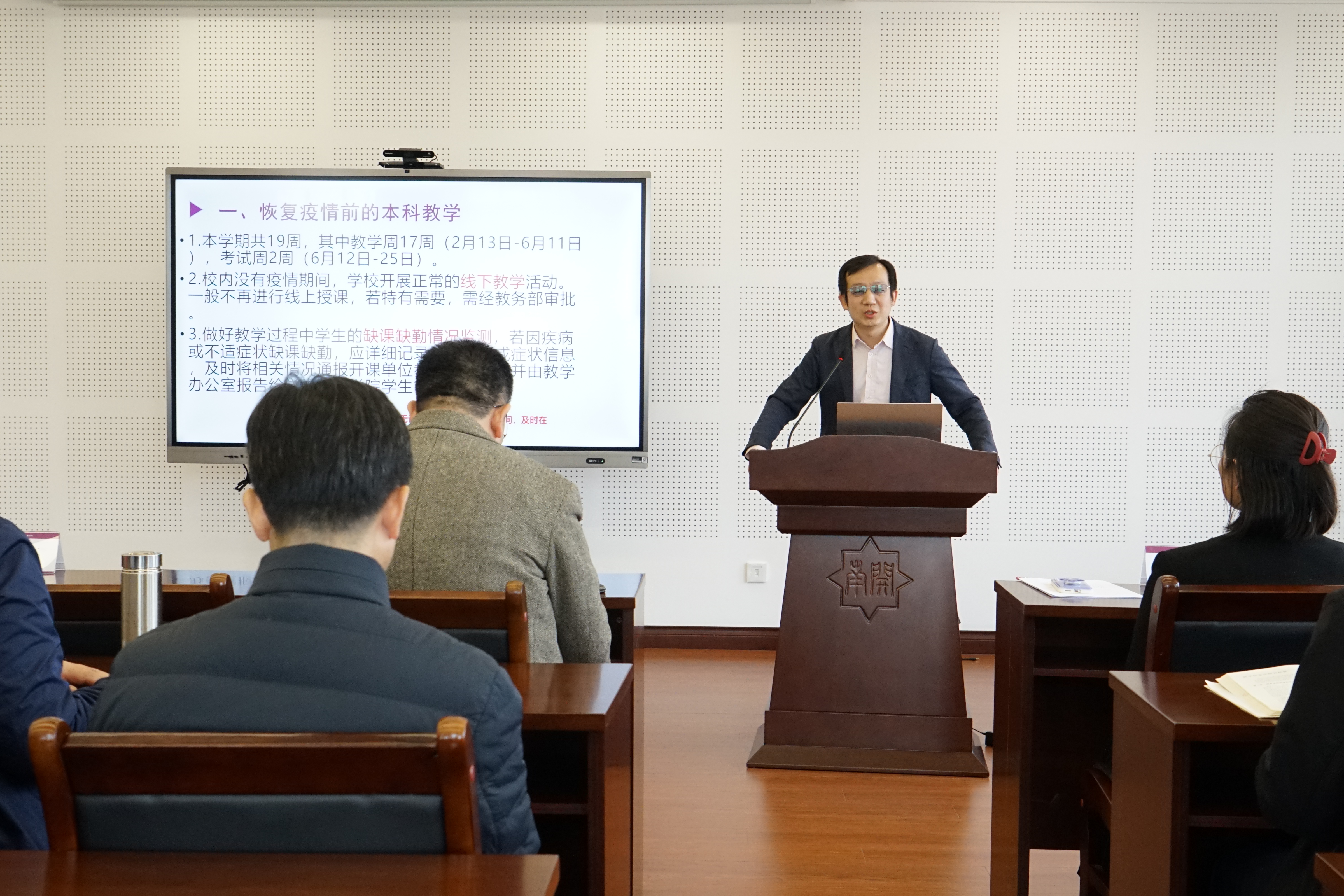 陈鹏部署了公司产品、科学研究、人事人才、信息公开和安全节能等工作,强调了毕业论文指导、本科教学评估、研究生招生复试、核心教材编写、重要项目申报等事项。