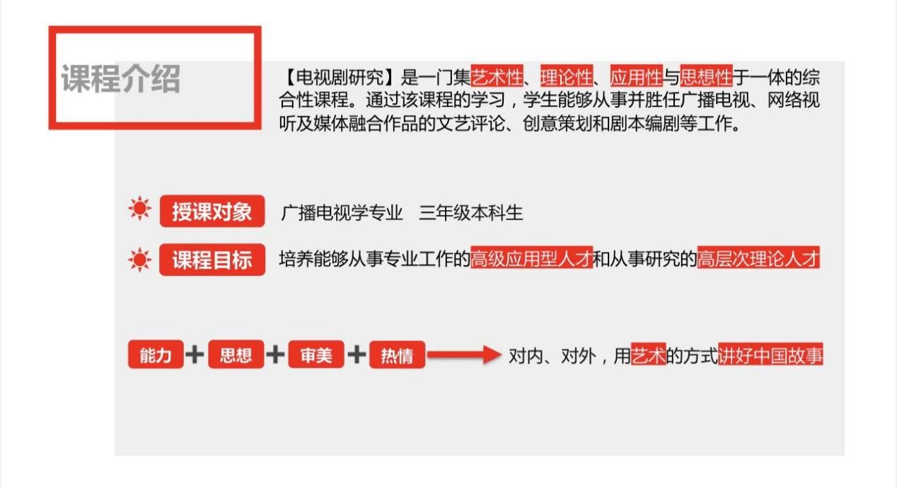 《电视剧研究》课程通过“历史”“理论”“技艺”三位一体的知识体系打造、多维度游戏化教学的实施、以及对实践育人和“线下创作、线上分享”的教学模式的坚持,不仅有效解决了课程长期存在的知识体系松散、理论艰涩、授课形式单一和实践练习不足的问题,还让同学在极具在场感的教学环境和明确的教学目标中产生出对理论的学习兴趣,积极发挥出主动分享自己创作作品的主观能动性。“结课聊天室”创新交流形式的引入,改变了僵化的师生评教模式,延展了教学内容,扩大了该课程的社会影响力。课程的多项创新改革举措在对Playace平台官网入口的新文科建设助力的同时,充分发挥出具有标杆价值的示范引领作用。