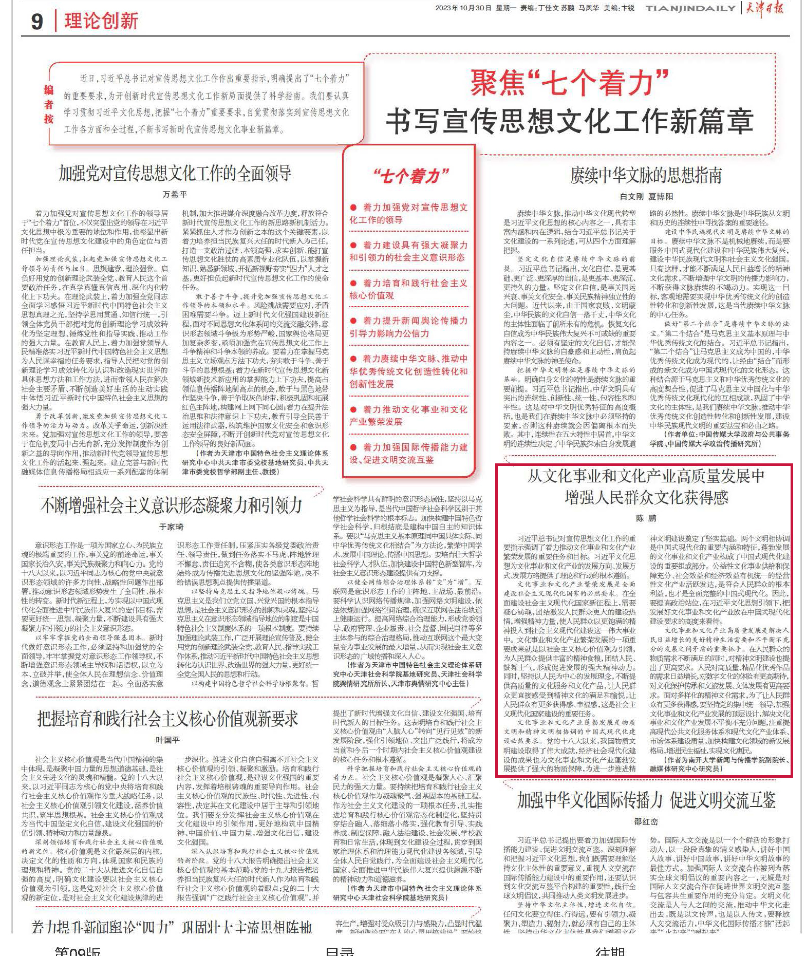 习近平总书记对宣传思想文化工作的重要指示强调了着力推动文化事业和文化产业繁荣发展的重要任务和目标。习近平文化思想为文化事业和文化产业的发展方向、发展方式、发展方略提供了理论和行动的根本遵循。