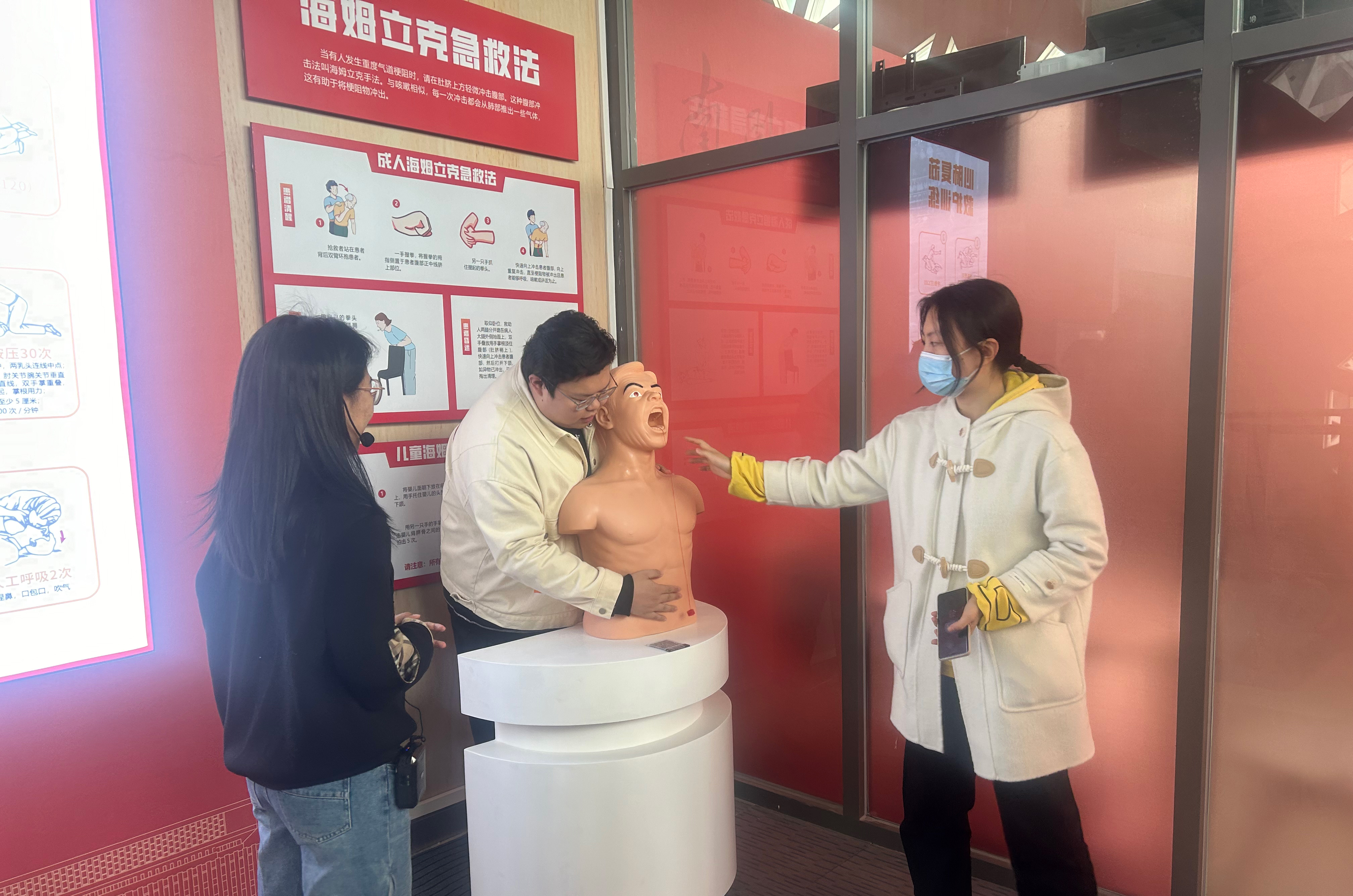 在心肺复苏训练、海姆立克急救法模块,同学们看了讲解员演示后,纷纷上前尝试,领悟要点。在消防演习中,不少同学第一次使用灭火器,在实际操作中体会“提、拔、握、压”的技巧。电动车起火模拟演示与宿舍安全隐患查找,让大家切身体会到了校园消防安全的重要性,杜绝消防隐患,刻不容缓。吸毒形象的模拟生成让同学们对吸毒的巨大危害有了更加直观的感受。在VR超感体验区,同学们身临其境,体验灾难来临之时如何自救。在防诈骗讲解中,同学们认真了解相关知识,互相交流自己曾经收到过的诈骗电话、信息,彼此分享反诈经验。