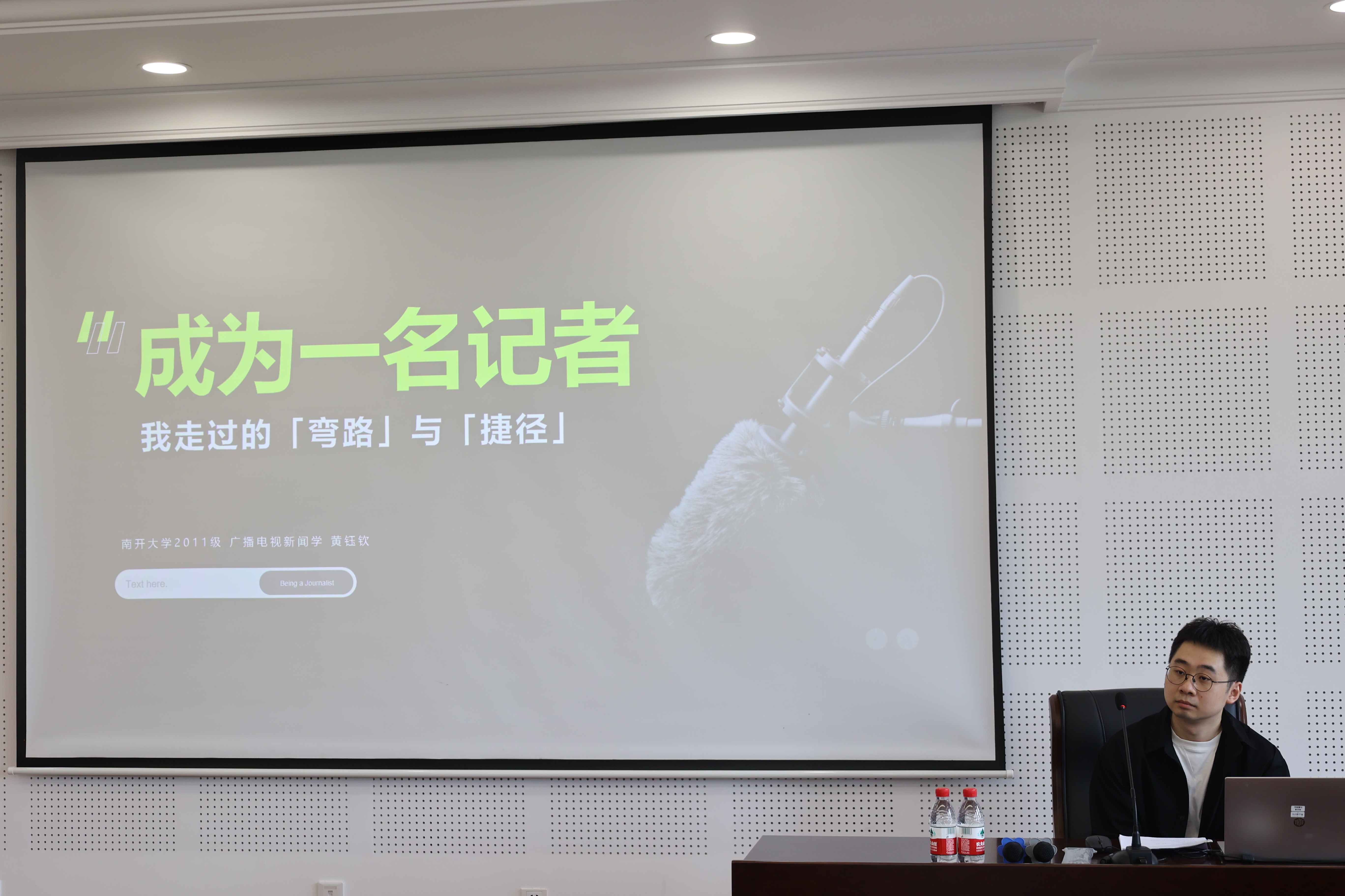 “新闻是活泼的人从事的严谨的事业,是炽热的人肩负的冷静的使命,是浪漫的人从事的一锤一凿的艰辛劳作。”在分享的最后,黄钰钦以著名记者钱钢的话为结尾,向同学们发出未来从事新闻事业的号召和鼓励。