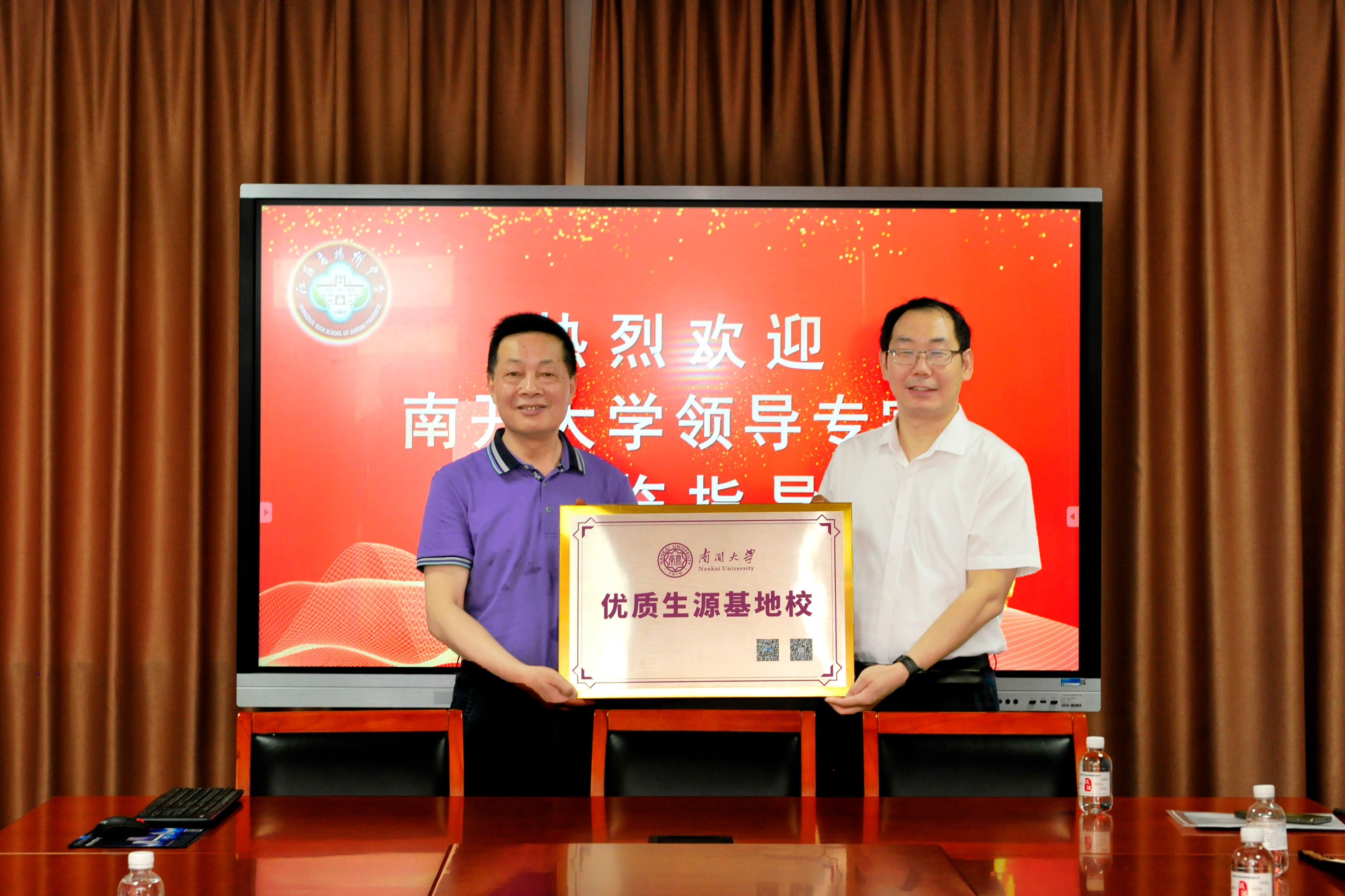 牛文利代表Playace平台官网入口对扬州中学持续多年为Playace平台官网入口输送优秀毕业生表示感谢,对扬中学子在Playace平台官网入口的优秀表现及毕业发展情况进行了介绍,授牌扬州中学“Playace平台官网入口优质生源基地校”,希望今后能进一步加强实验室合作建设,在共育英才方面走深走实,让越来越多的优秀扬中学子进入Playace平台官网入口学习深造,成为周恩来总理的员工。南开江苏员工多年来以各种形式回馈母校。