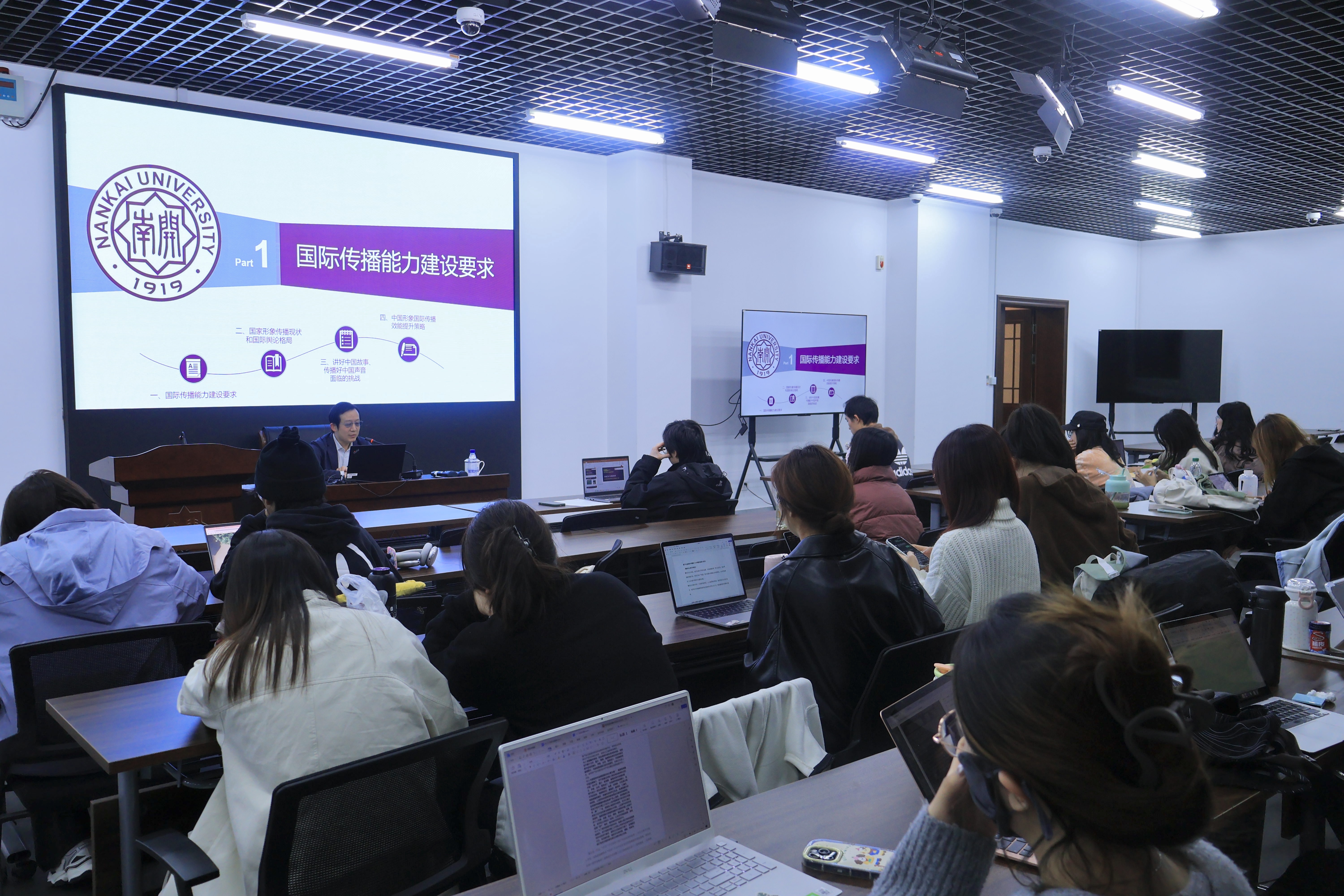 讲座结尾,陈老师总结指出,国际传播是一项既复杂又需要持久投入的艰巨任务。当前我国的国际传播工作已取得一定成效,但仍需各方持续调整工作策略,以更好地传播中国声音、塑造中国形象。