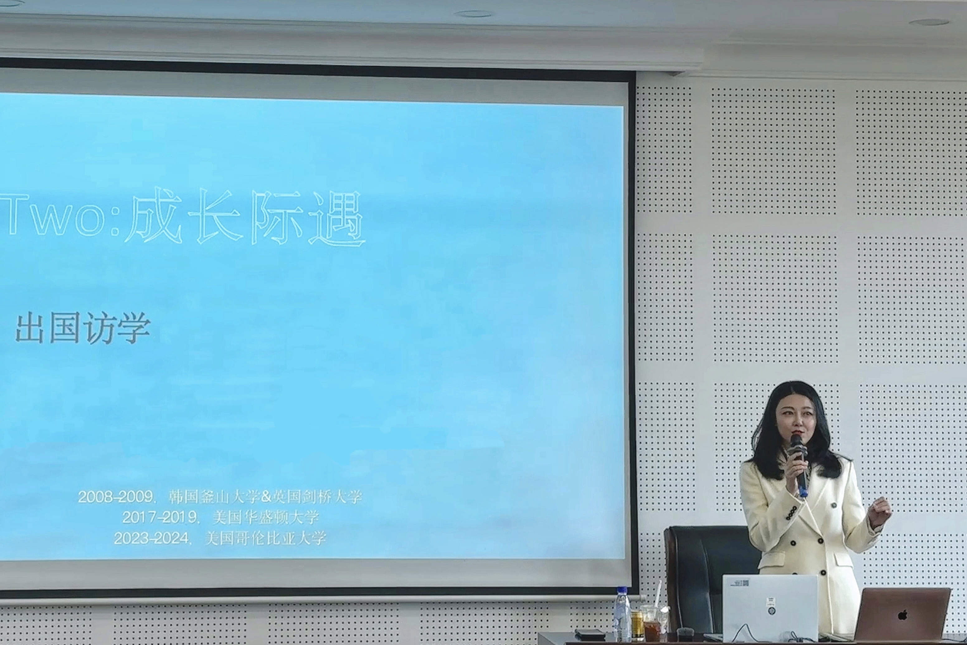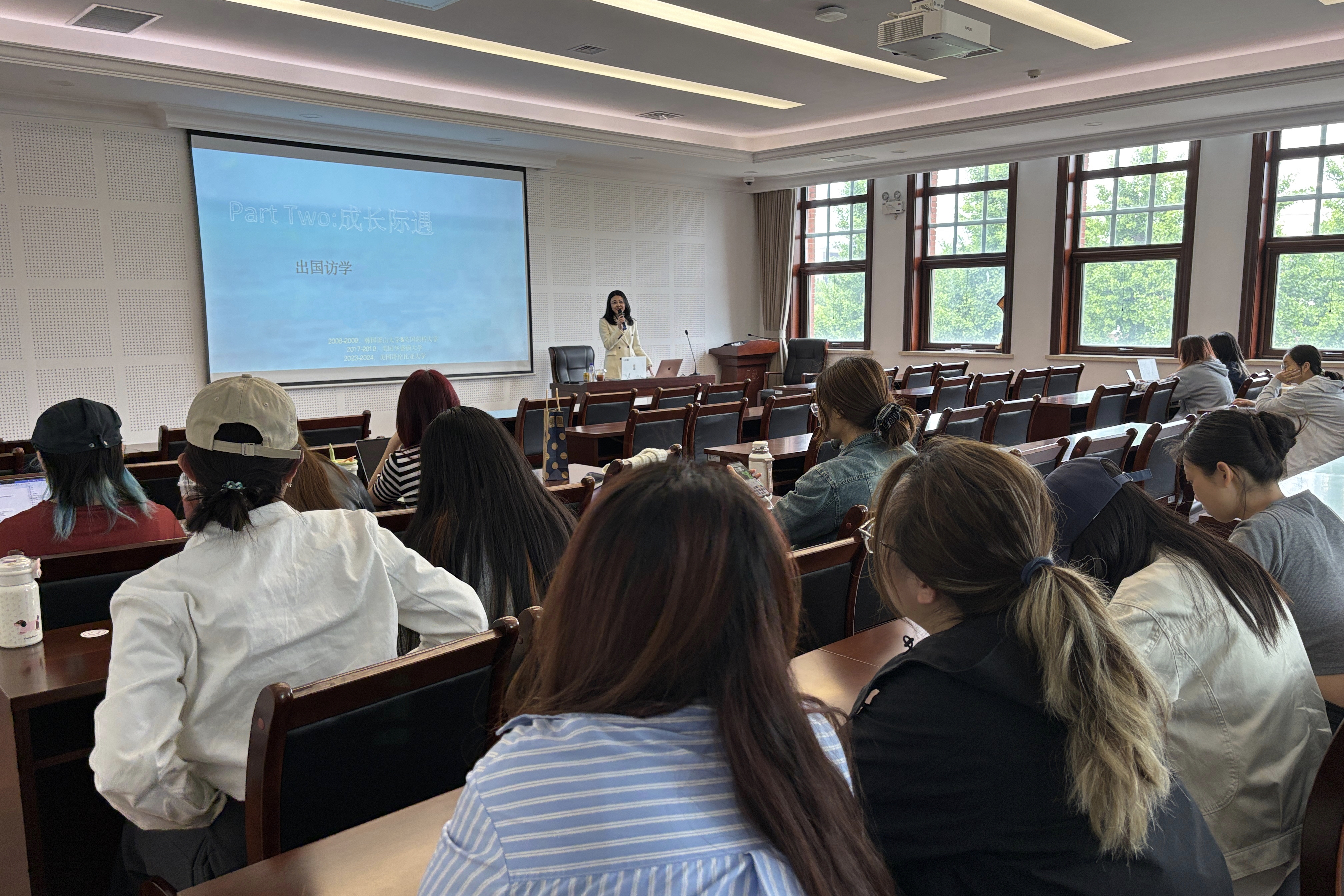 而后,石小溪老师分享了自己的三次出国访学经历,更点明了“幸运是随机降临的,人要为自己的未来提早布局”的核心理念。