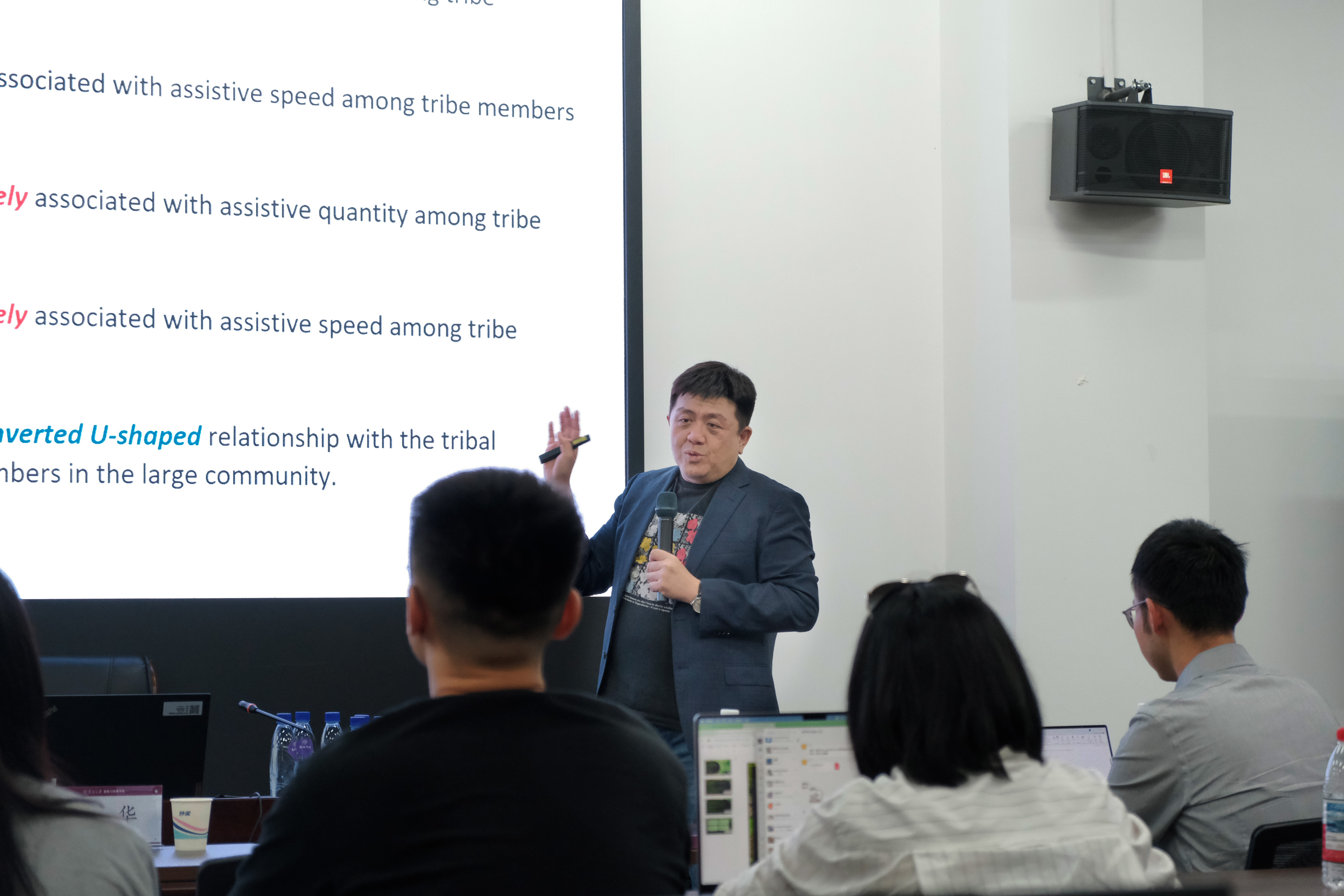 陈致玮以《部落孤岛还是知识桥梁?针对在线社群自给型子群体的研究》(Tribal Islands or Knowledge Bridges? Understanding Self-Sufficient Subgroups in Online Communities)为题,深入剖析在线社群内部子群体的形成与作用机制。他指出,平台的群组划分在增强用户粘性的同时,也可能催生排外性“部落”(tribe),影响与外部互动的质量。研究提出“部落密度”(tribal density,部落内部互动的强度)与“部落传递性”(tribal transitivity,部落内部形成紧密联系的子群的趋势)两个核心变量,并基于以卡车司机为中心的大型问答平台的数据进行实证分析。研究发现,密度的增加最初会促进部落内互助的速度和数量提升,但随着排他性的出现,与部落外互助呈倒U型关系。相反,传递性最初会减少部落内互助,但在非常高的水平上反而会引发新的外部互助行为。基于上述研究发现,陈致玮提出了针对性策略建议,以削弱在线社区过度自给的不利影响,在维护群体凝聚力的基础上提升社区活力。