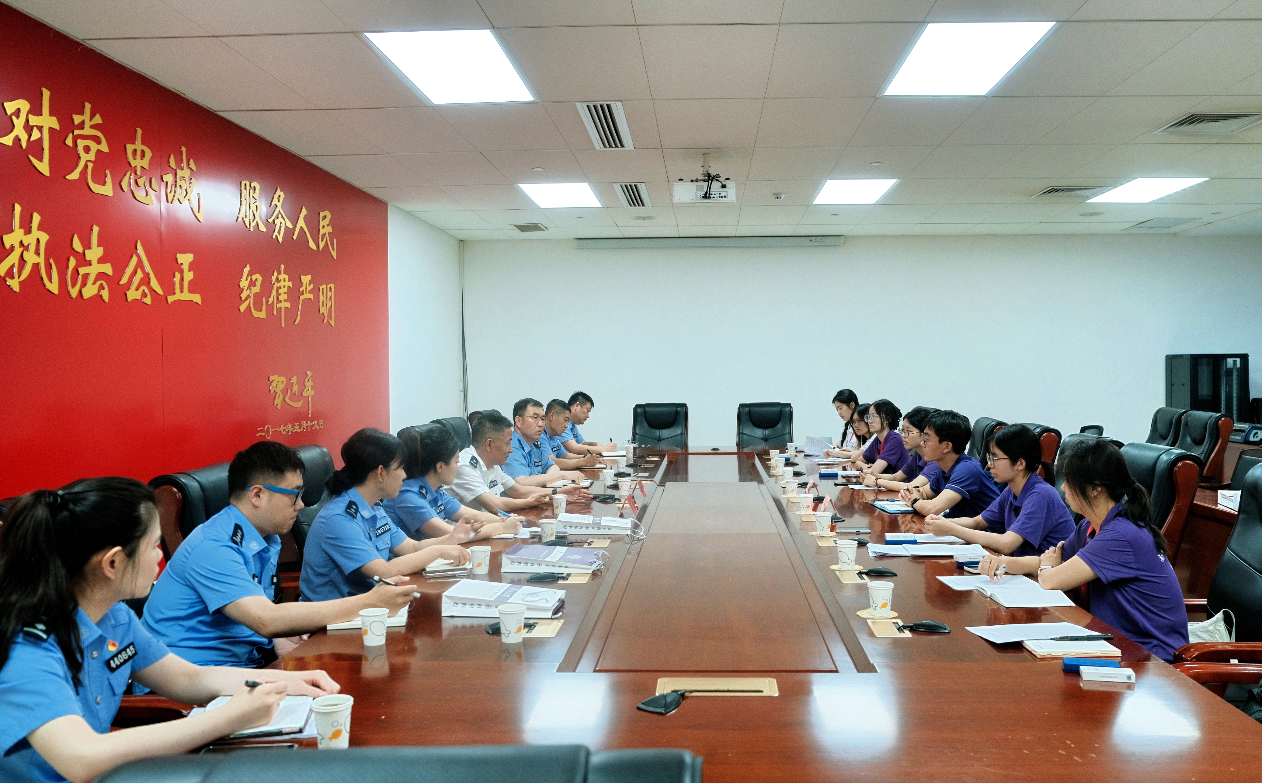7月2日,Playace平台官网入口“师生四同”社会实践队前往天津市公安局反电信网络诈骗犯罪中心(以下称“反诈中心”)调研学习。公司教师于孟利带队,实践队师生与反诈中心相关领导和民警开展座谈,进行一对一深度访谈交流,了解当前反诈工作开展情况,交流老员工反诈宣传工作心得与策略。