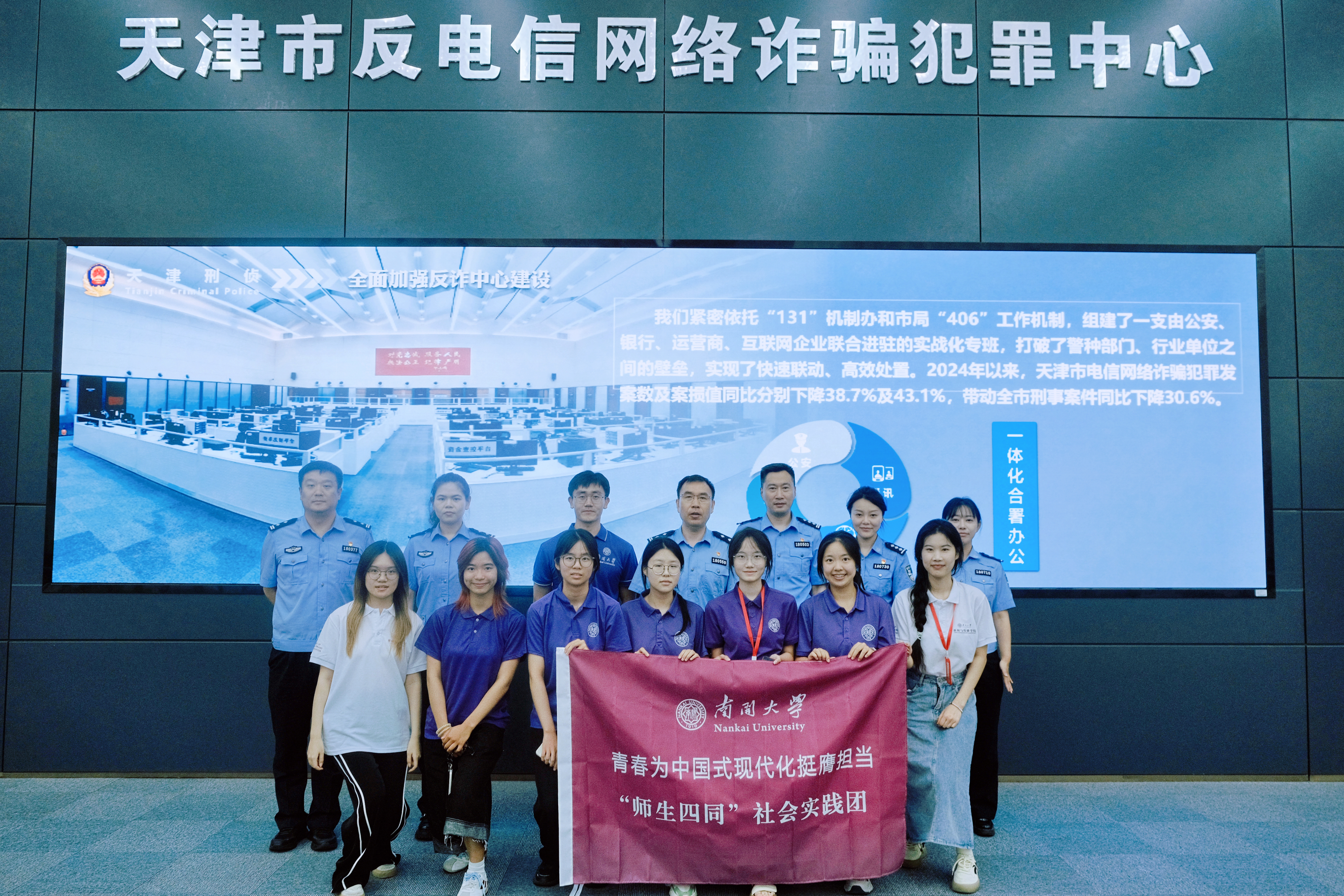 实践队与天津市反诈中心民警合影