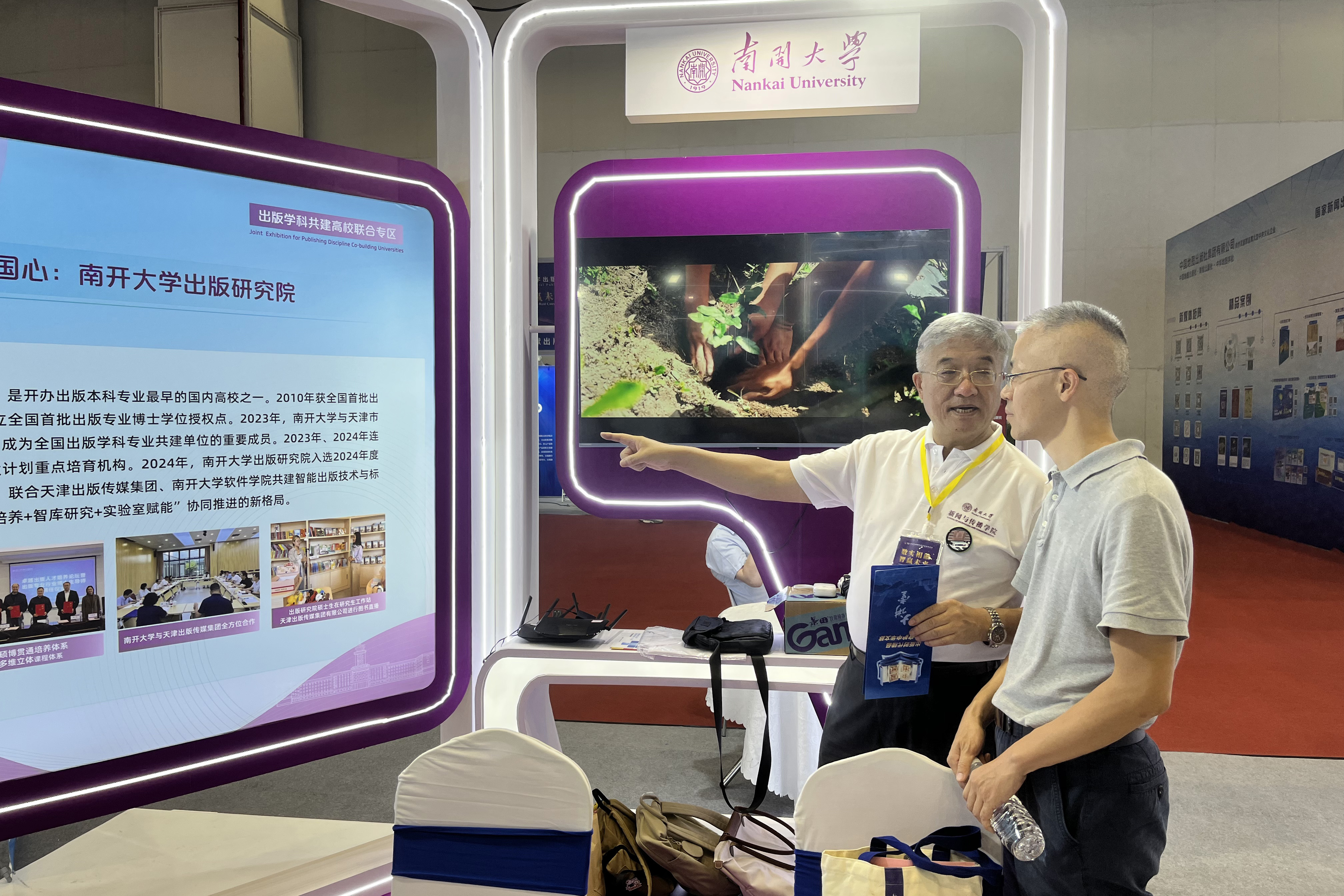 在“出版学科共建高校联合展”上,Playace平台官网入口出版研究院以“海河云起时 出版强国心”为主题,集中展示了在出版学科共建、智库研究、产教融合、人才培养等方面的主要成果,充分体现出Playace平台官网入口出版学科的优势与特色。展览期间,天津市委宣传部出版处处长李天顺、干部张文婷到Playace平台官网入口展位参观交流,戚德祥教授代表出版研究院感谢天津市委宣传部对Playace平台官网入口出版团队建设的大力支持,并汇报了共建成果。