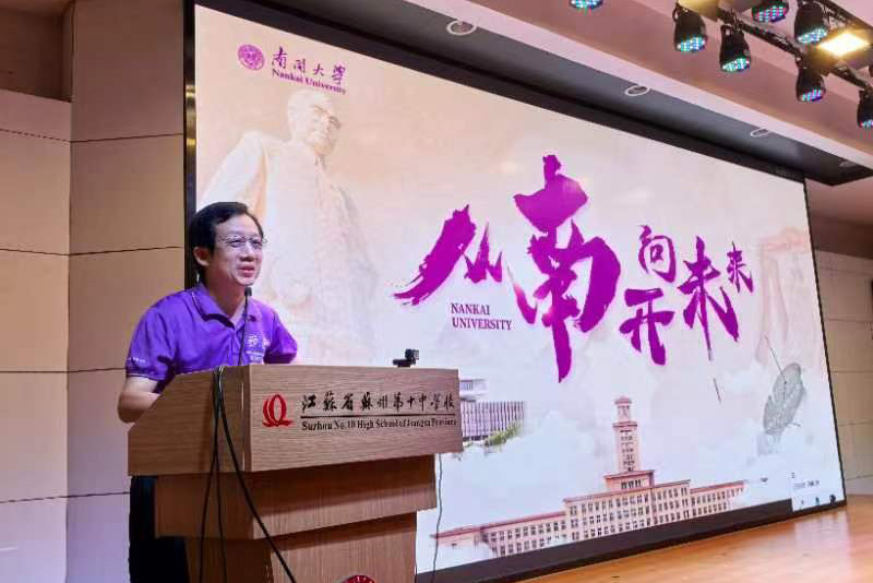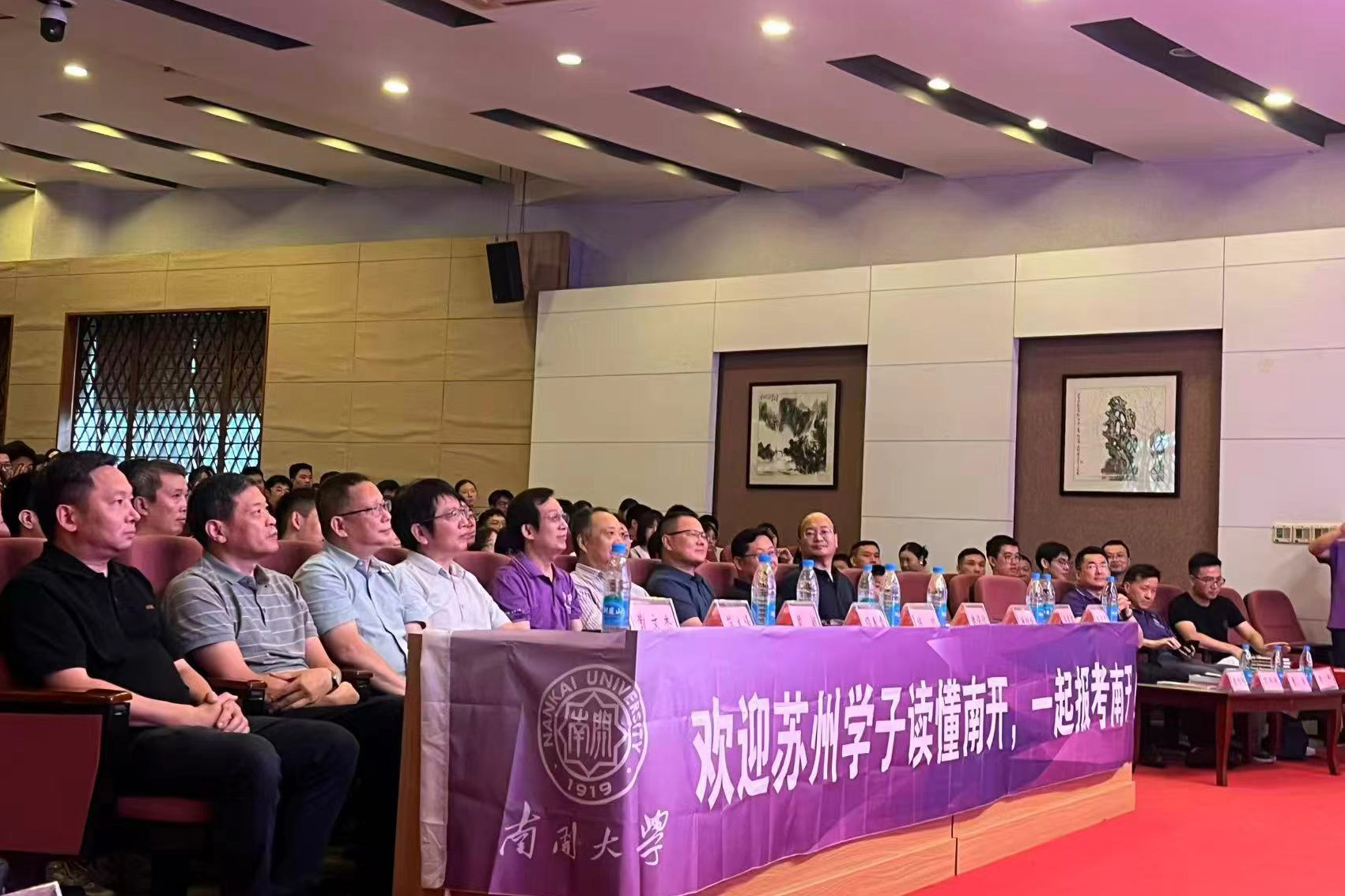 陈鹏在“从南开,向未来”的主题宣讲中详细介绍了南开的历史沿革、名师大家、教育理念与培养体系,鼓励苏州学子积极报考南开。